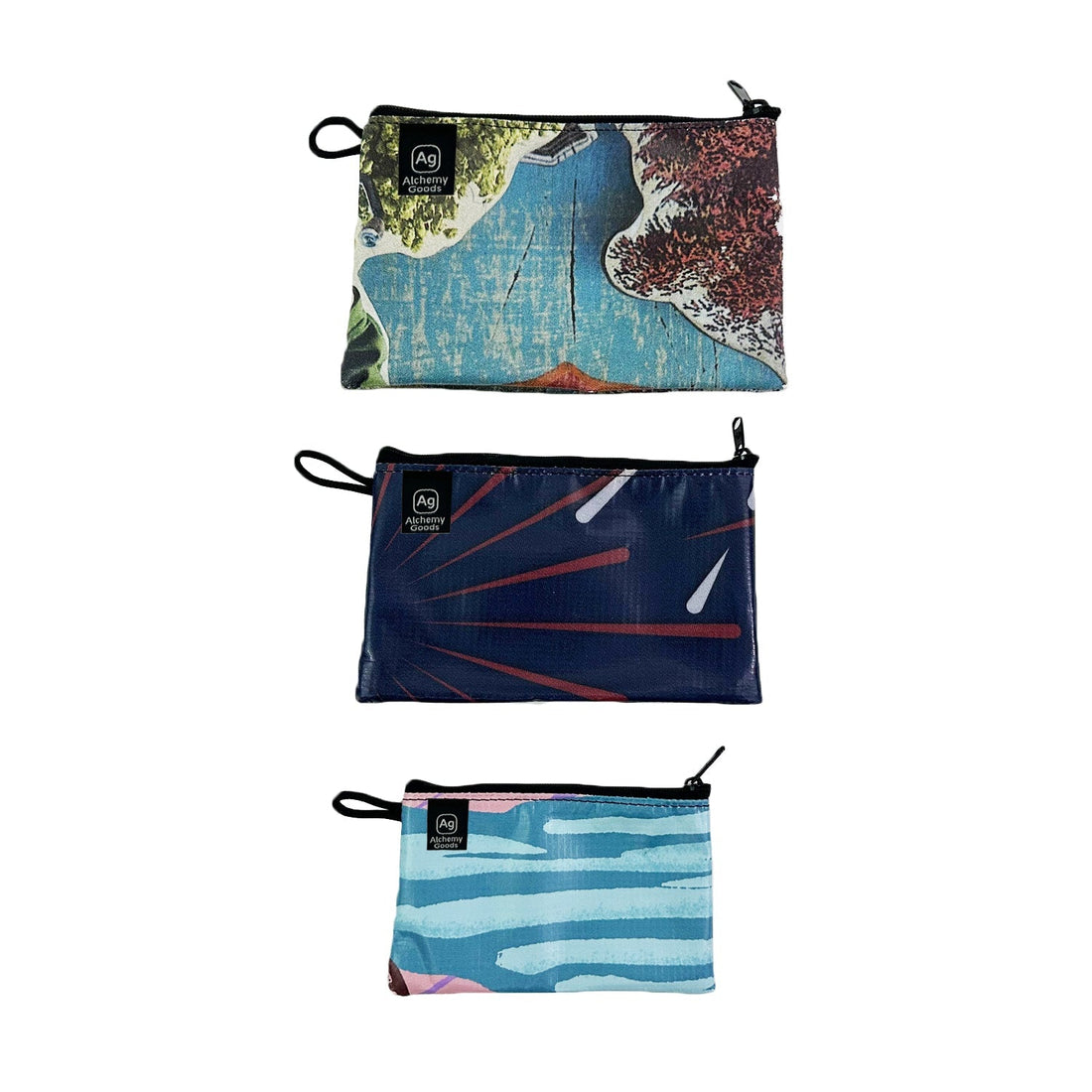 Set of 2 Upcycled Billboard Zipper Pouches w/Liner, Save Landfill Space!