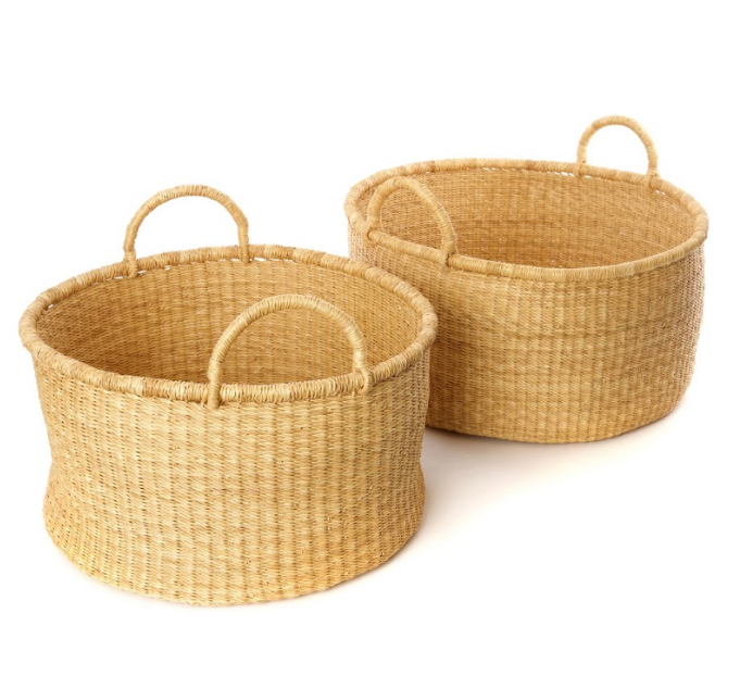 Set of 2 Handwoven Storage Baskets with Handles, Elephant Grass , Fair Trade & Eco-Friendly