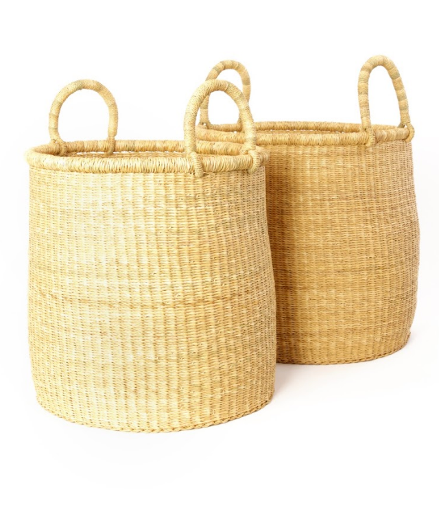 Set of 2 Tall Handwoven Storage Baskets, Elephant Grass, Fair Trade- Ghana