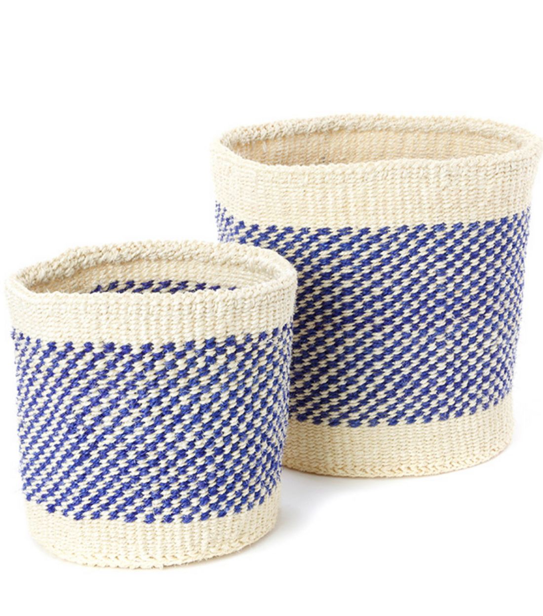 Two Handmade Blue & Cream Sisal Nesting Baskets, Kenya, Fair Trade