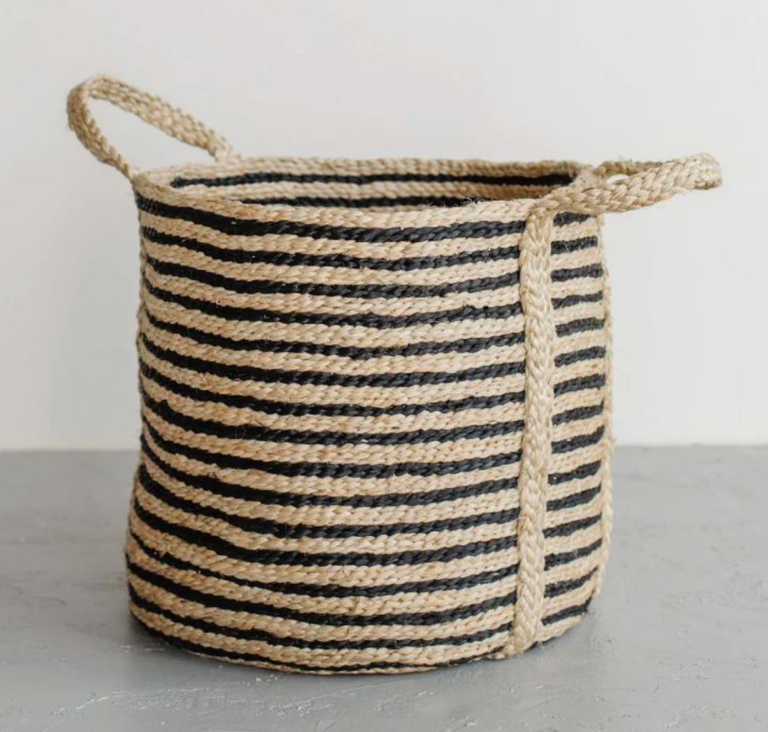 Handwoven Jute Basket, Black & Natural, Bangladesh, Fair Trade