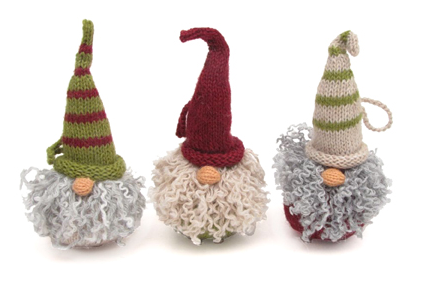 Set of 3 Hand Knit Gnome Head Ornaments, Fair Trade from Peru