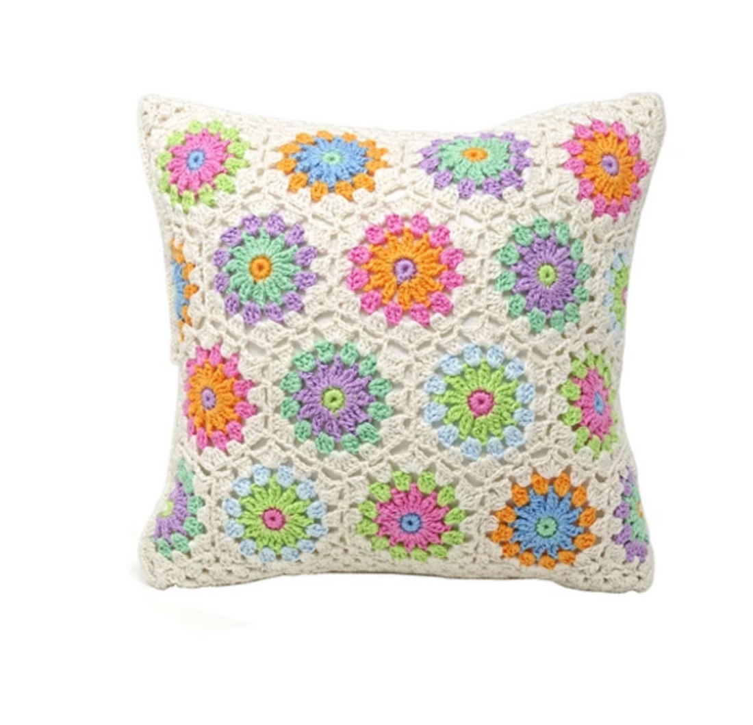 Pastel Color Flower Crochet Decorative Pillow - Handmade, Fair Trade