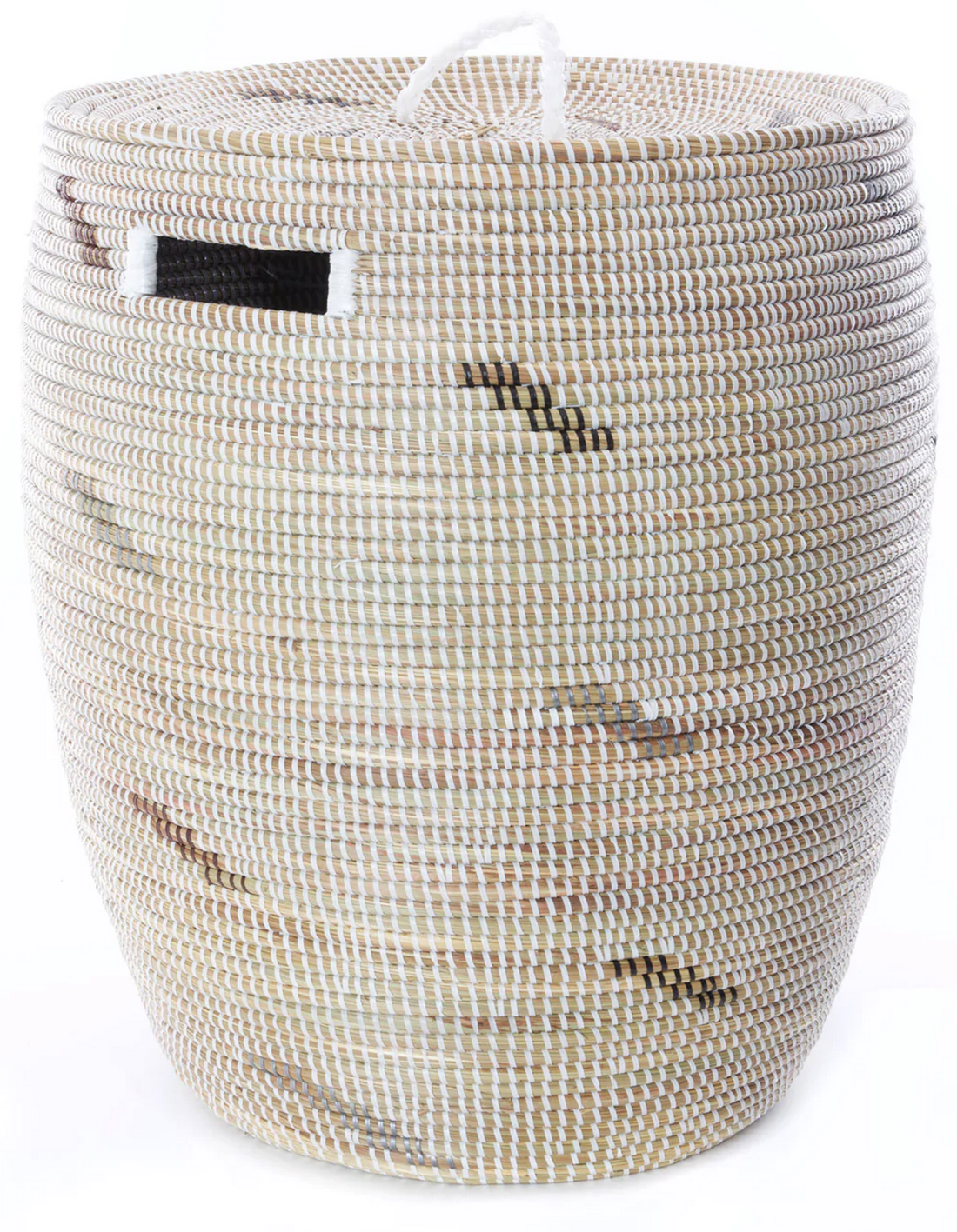 Hand Woven White Hamper Laundry Storage Basket, Fair Trade,Senegal