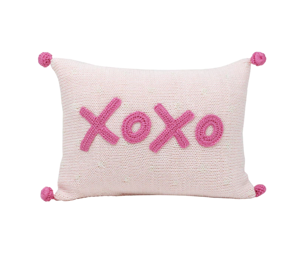 Hand Knit XO XO Mini Pink Valentine or Baby Pillow, Fair Trade from Armenia