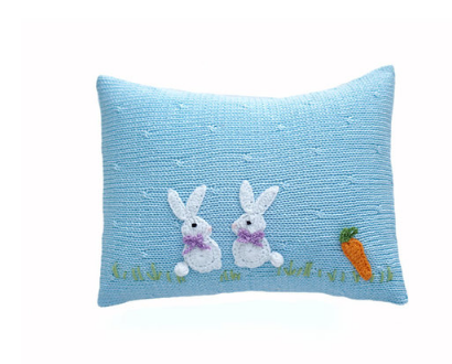 Hand Knit Blue Baby Pillow with Two Bunnies , Fair Trade for Artisans