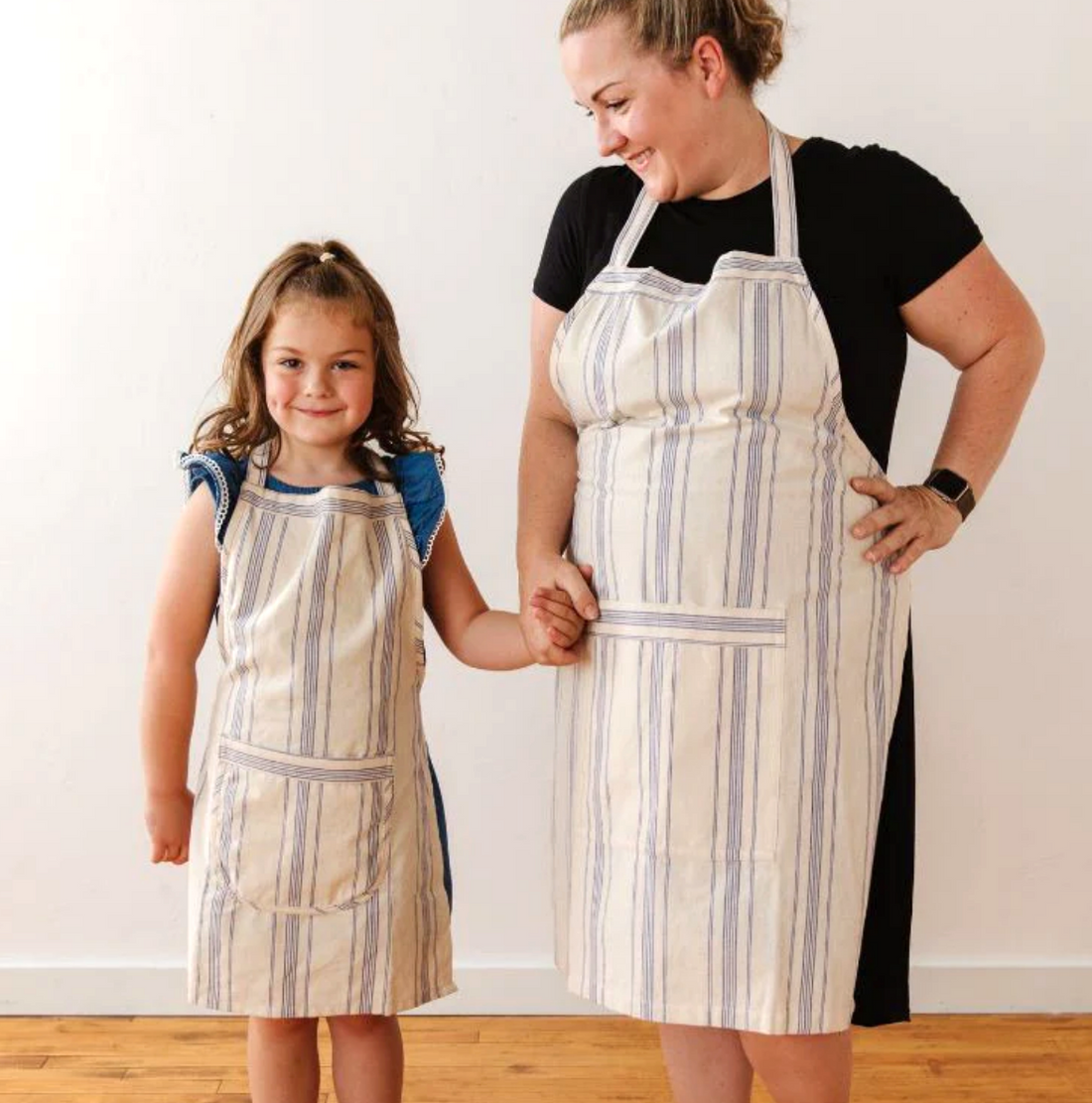 Adult and Child Handwoven, Natural Cotton Striped Apron, Fair Trade, Bangladesh