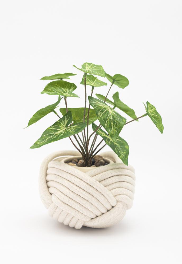 Handmade Woven Rope Small White Planter, Fair Trade, Gives Freedom to Women!