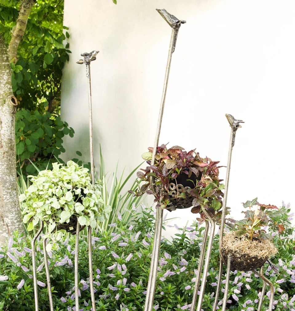 Ostrich garden plant & flower holder (slender)- Recycled metal, Fair Trade from Kenya