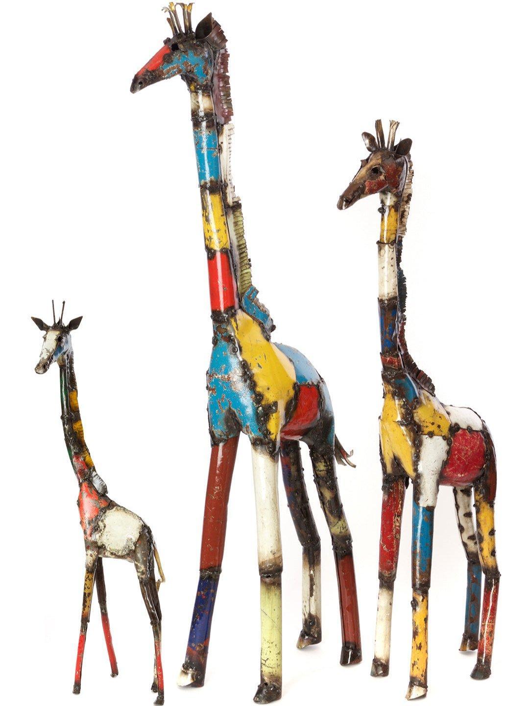 Colorful Recycled Oil Drum Metal Giraffe Sculptures. Fair Trade, Zimbabwe