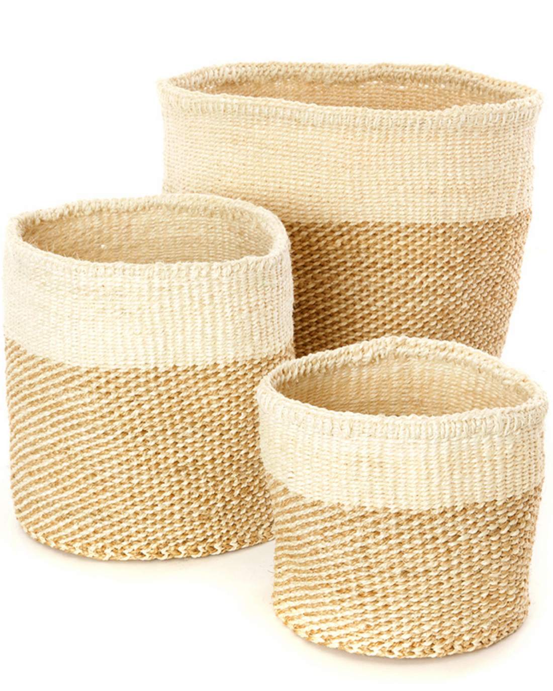 3 Handwoven Cream & Beige Sisal Nesting Baskets, Kenya, Fair Trade