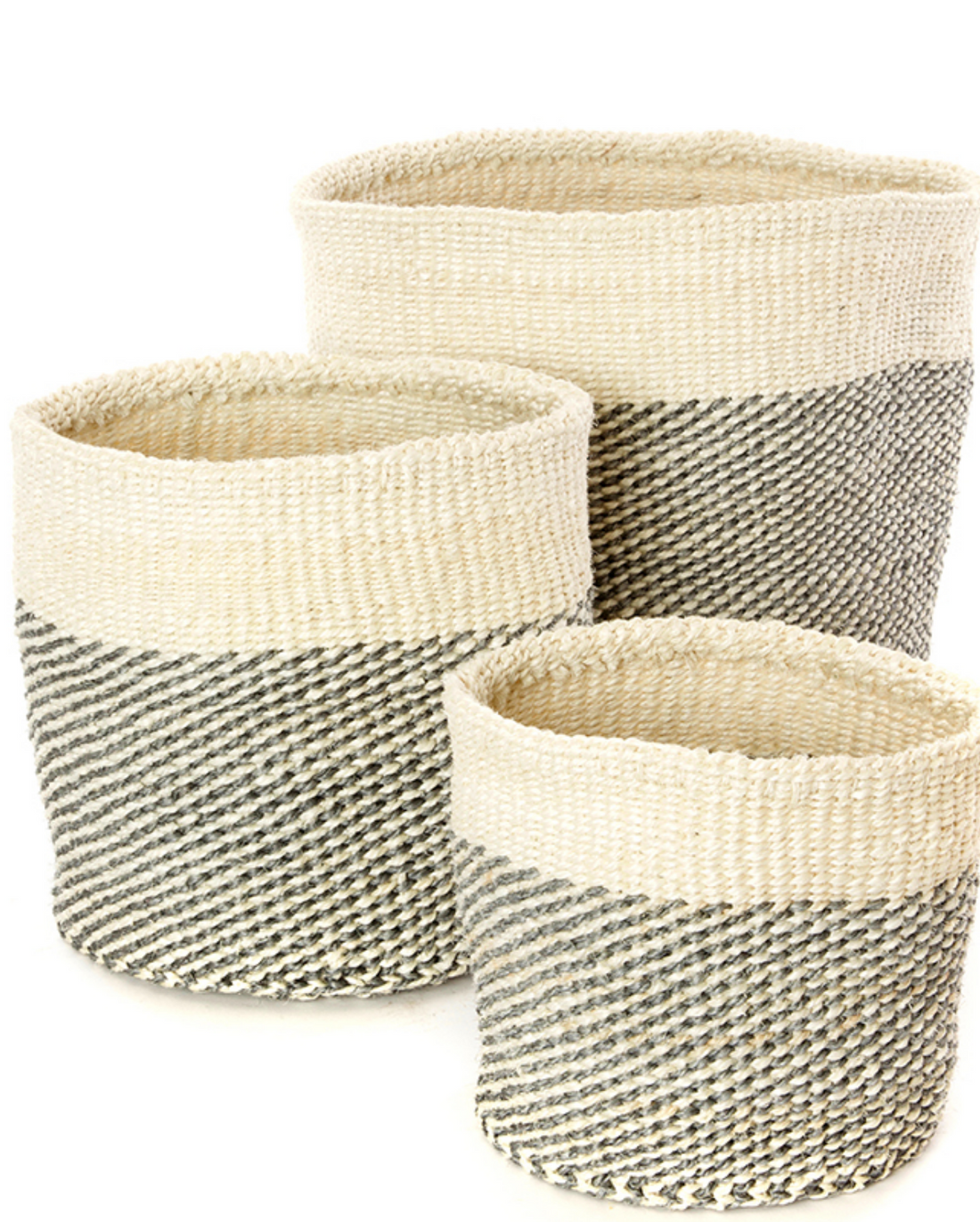 Three Handwoven Grey & Cream Sisal Nesting Baskets, Kenya, Fair Trade