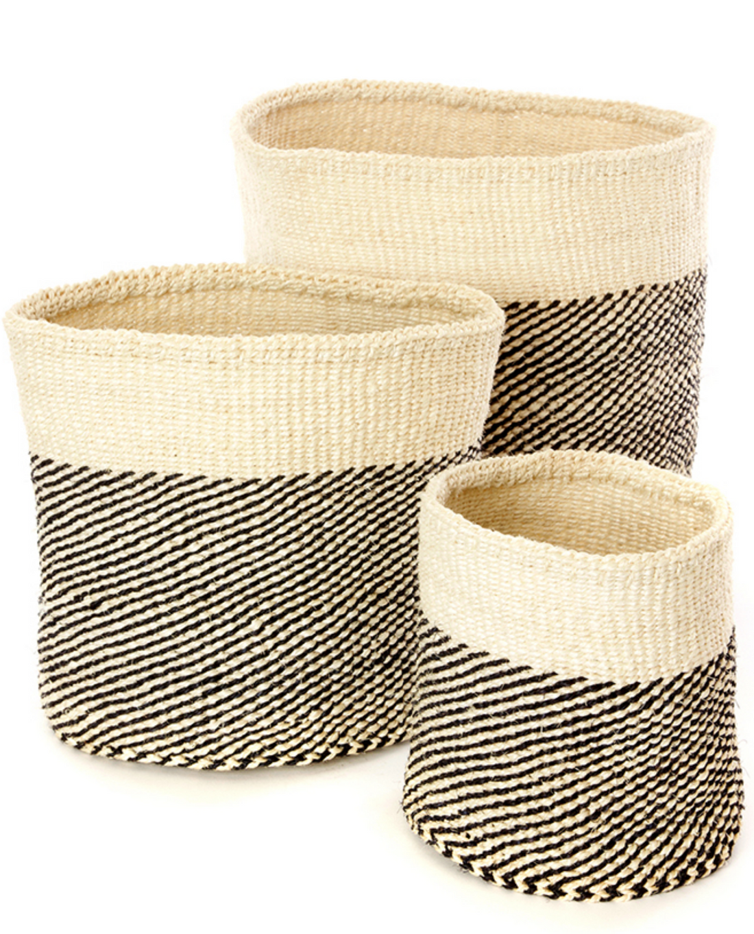 Three Handwoven Black & Cream Sisal Nesting Baskets, Kenya, Fair Trade