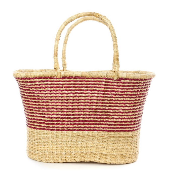 Red Pinstripe Handwoven Bolga Tote Basket, Fair Trade & Eco-Friendly
