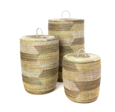 Set of 3 Large Handwoven Brown & White Mixed Storage Baskets, Fairtrade from Senegal