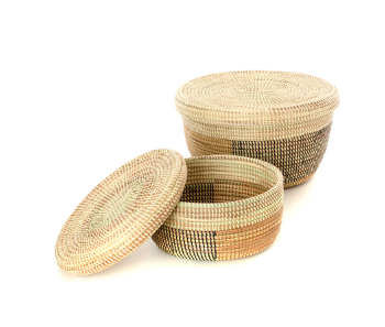 Set of 2 Handwoven Black, Cream & Gold Nesting Sewing Baskets, Fair Trade, Eco-Friendly
