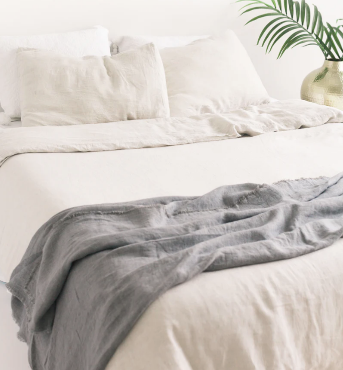 Hand Woven Stone Washed Linen Throw, Blanket or Tablecloth (Blue, Grey, Rose), Fair Trade