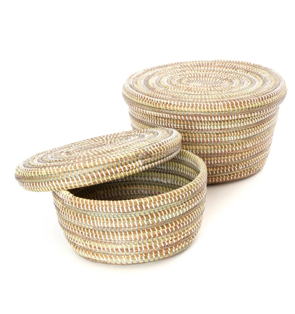Set of 3 Handwoven Silver Herringbone Nesting Sewing Baskets- Fair Trade, Educates Artisans- Eco-Friendly