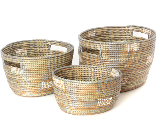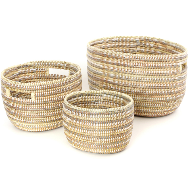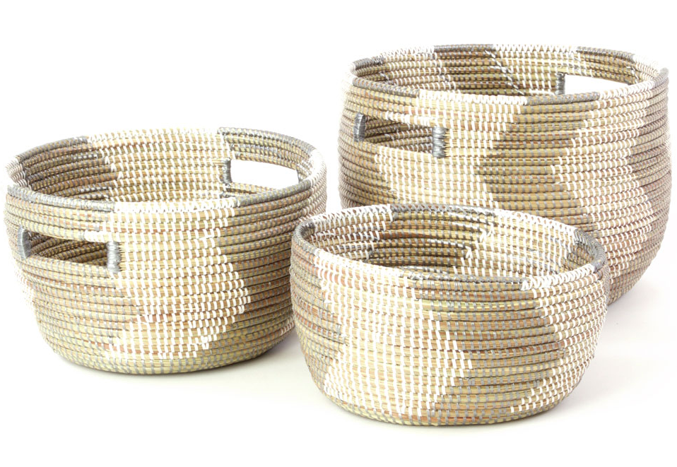 Set of 3 Handwoven Silver, Cream & White Nesting Baskets, Fair Trade