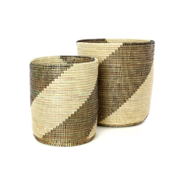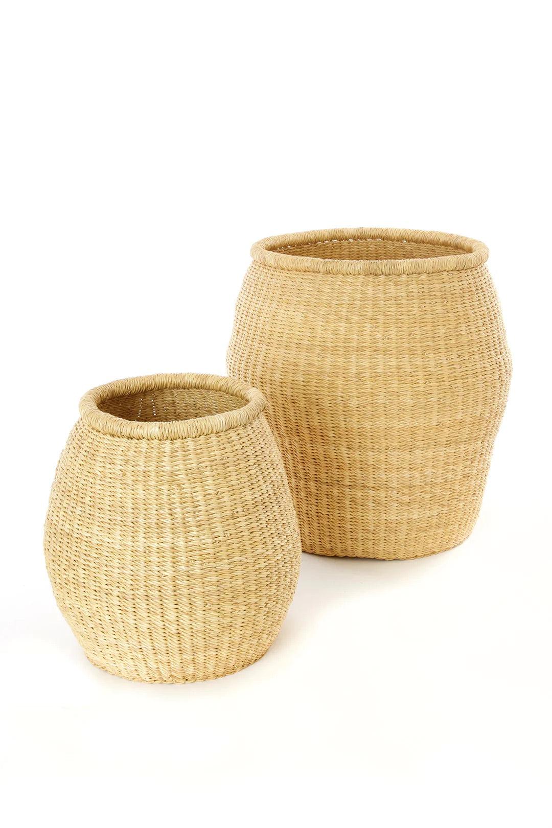 Set of 2 Tall Handwoven Barrel Storage Baskets, Elephant Grass, Fair Trade & Eco-Friendly