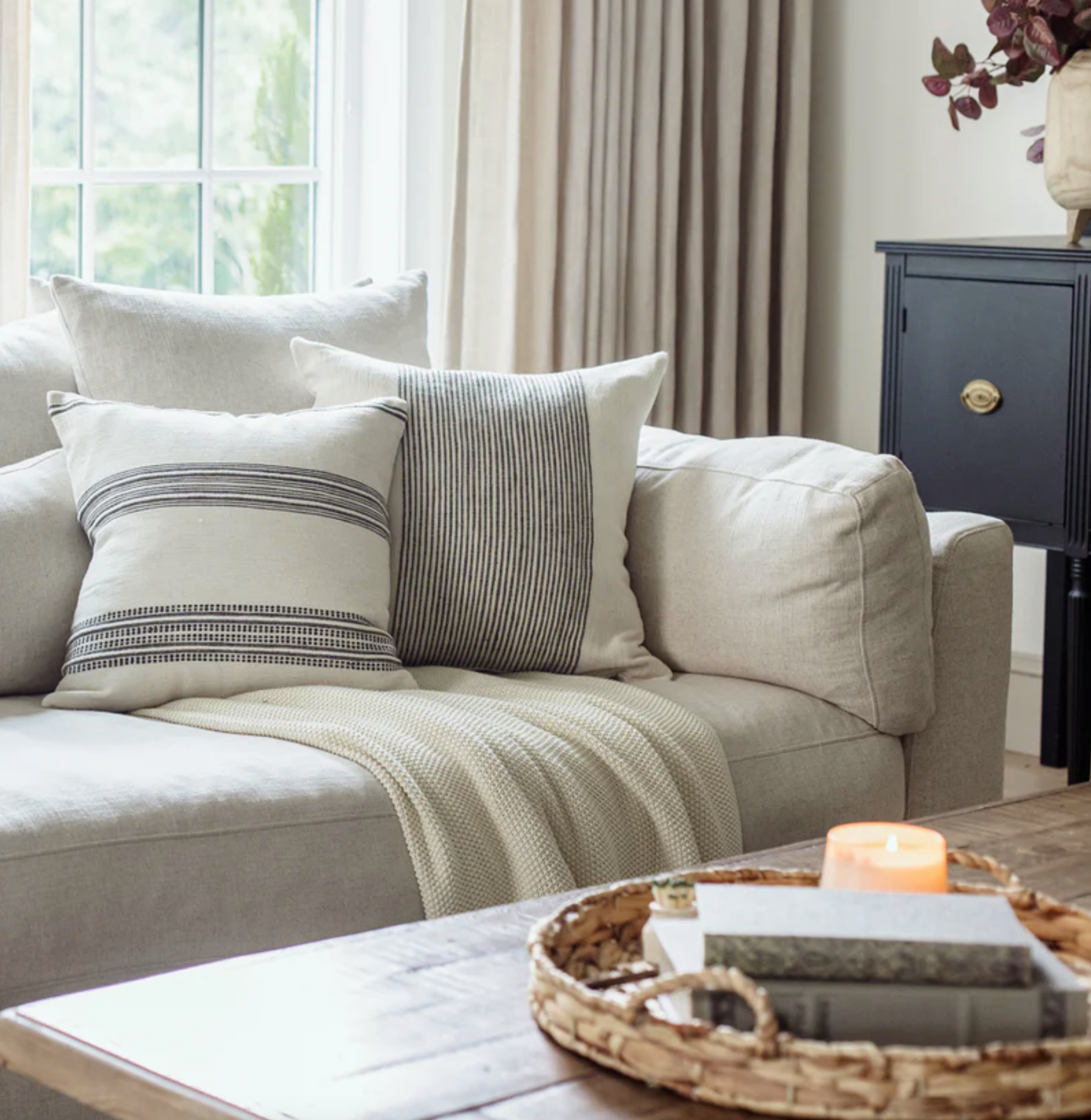 20" Hand Woven, Grey, White & Navy Throw Pillow, Ethiopian Cotton, Fair Trade