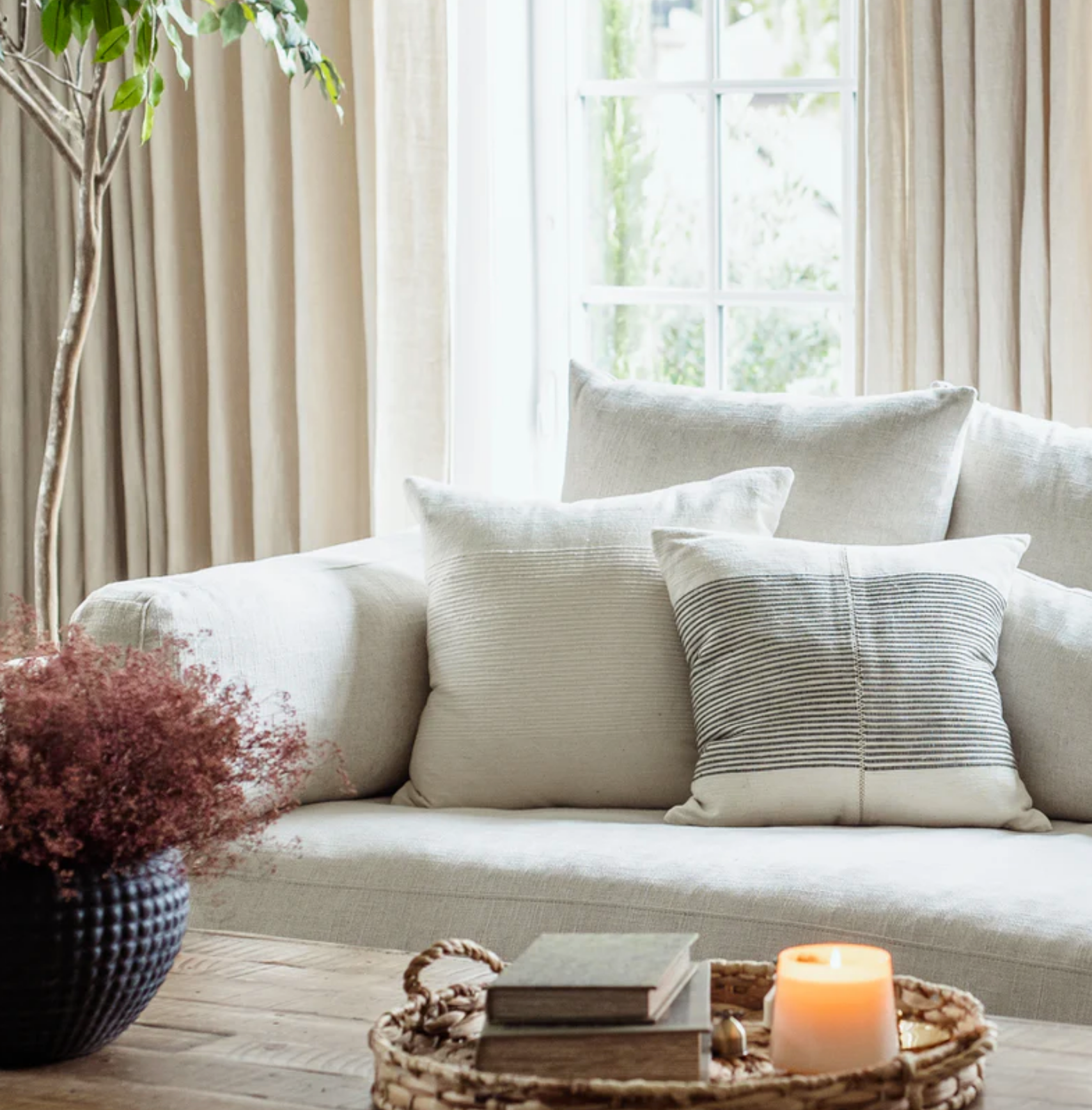 Our 20" Hand Woven Throw Pillow boasts a luxuriously soft hand-spun cotton material with a ribbed texture. Its double-sided design showcases a beautiful Ethiopian hand stitch, adding a one-of-a-kind handmade element to any space.
