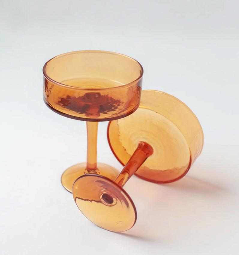 Handblown Hammered Coupe Cocktail Glasses- Set of Two, Ethically Made, Recycled