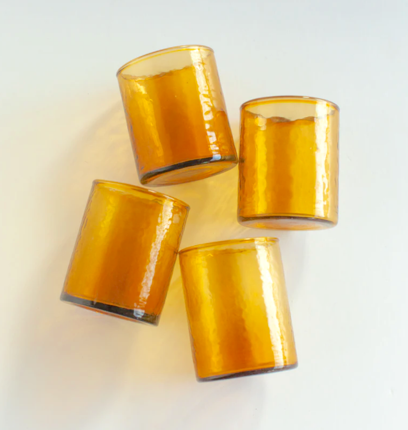 Handblown Hammered Glasses, Set of 4, Recycled, Lead Free, Fair Trade