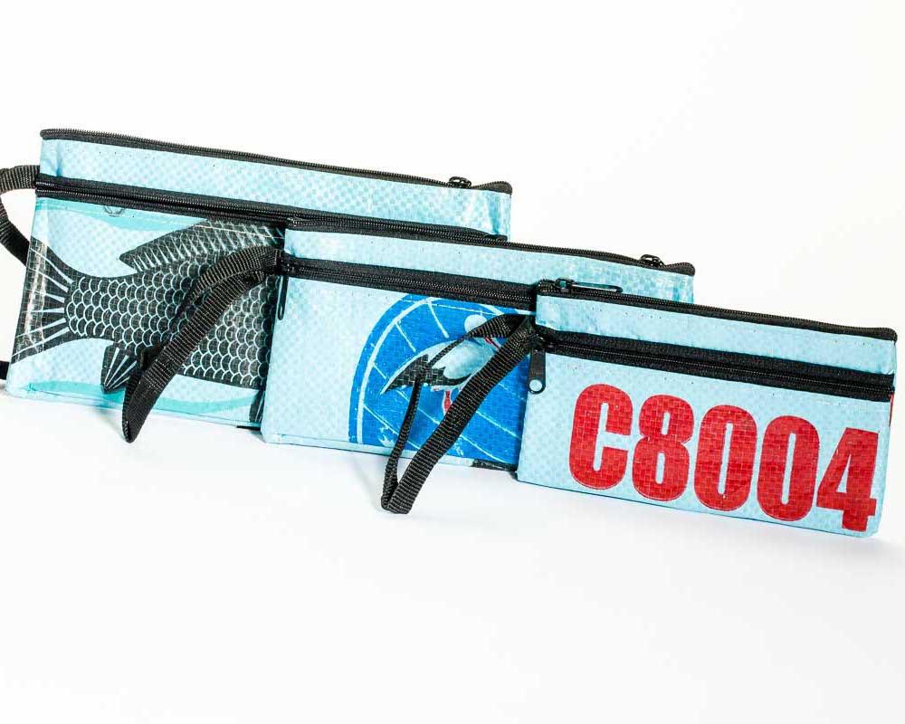 Nesting Upcycled Zip Pouch Cosmetic Bag Set, Sustainable, Saves Landfill Space